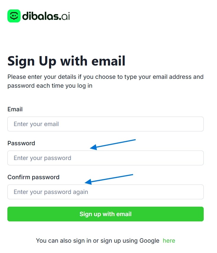 - Click "Sign up with email"