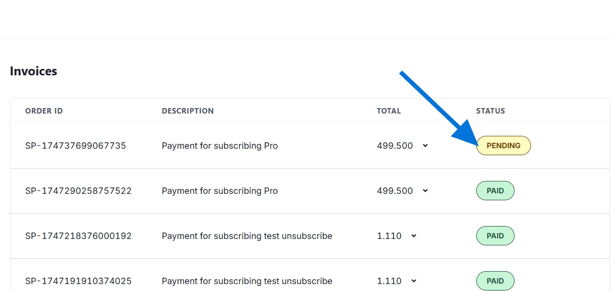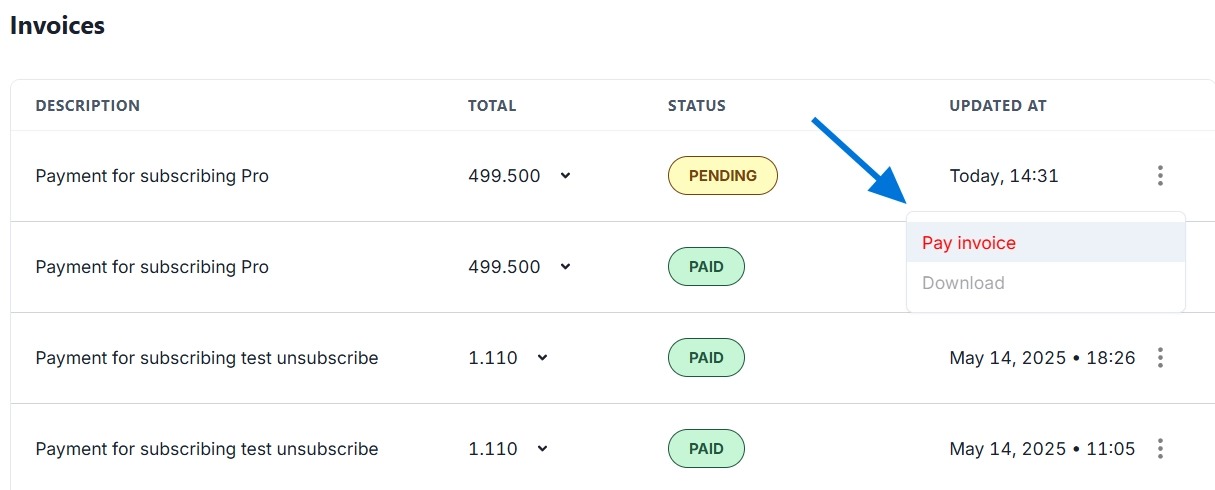Payment status and download invoice