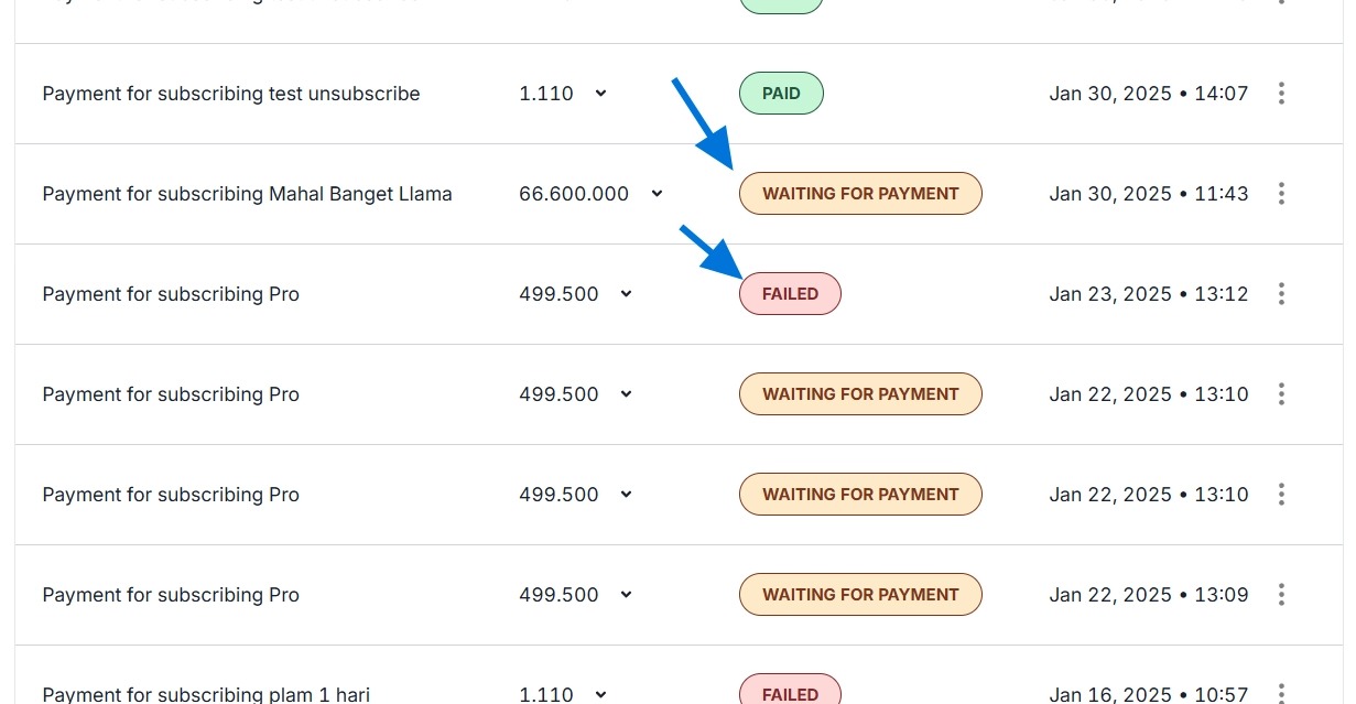 - If you do not make the payment by the specified time, the payment status will change to "Failed."