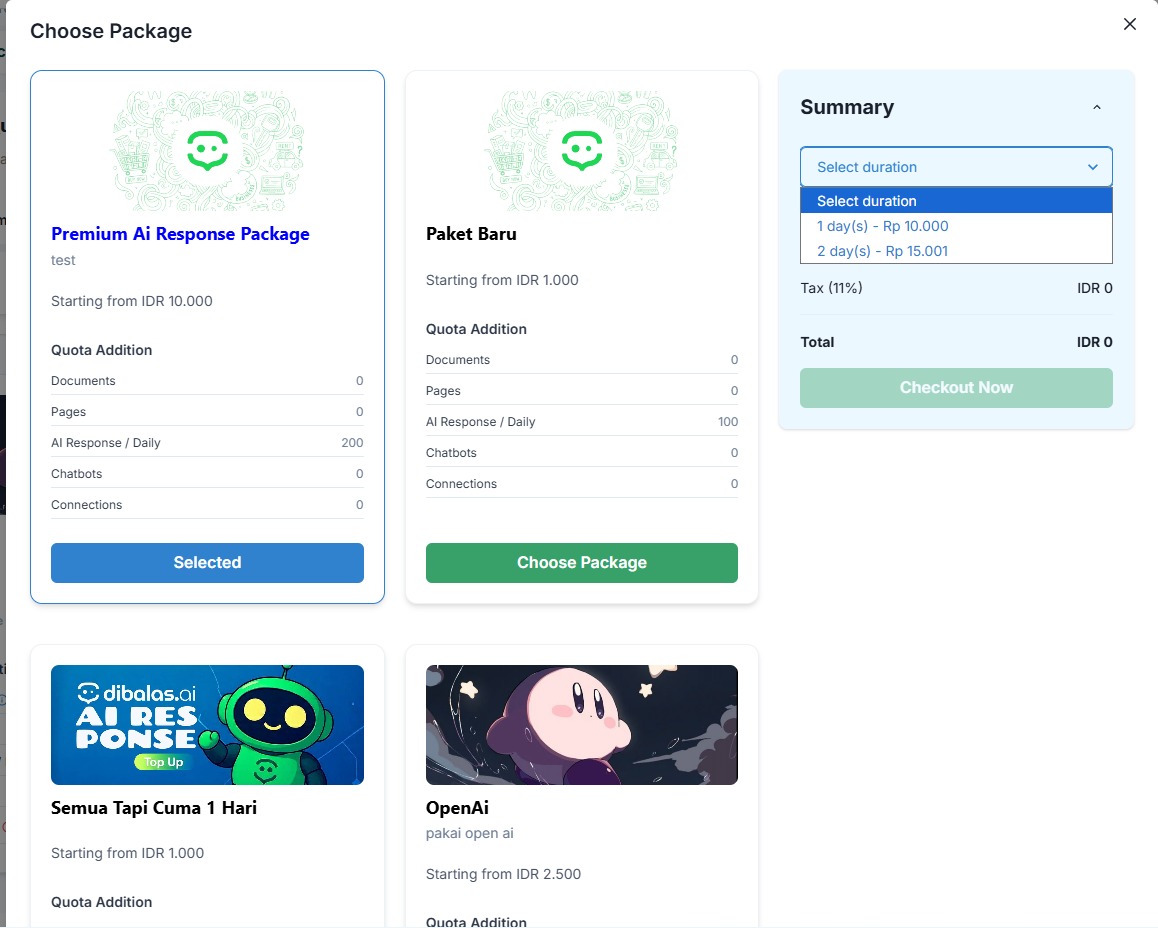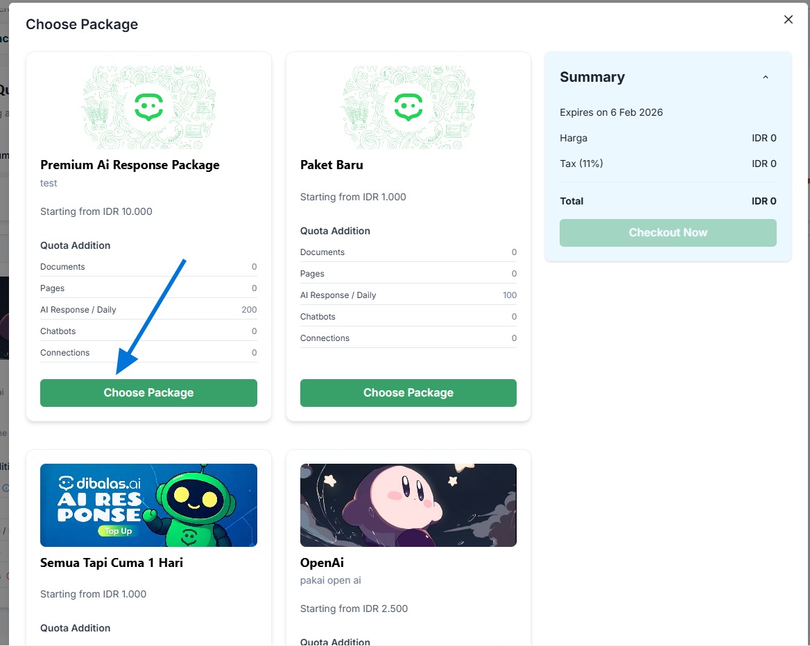 - You can view all the available packages along with their specifications. Press "Choose Package" on the packages that you want to purchase.