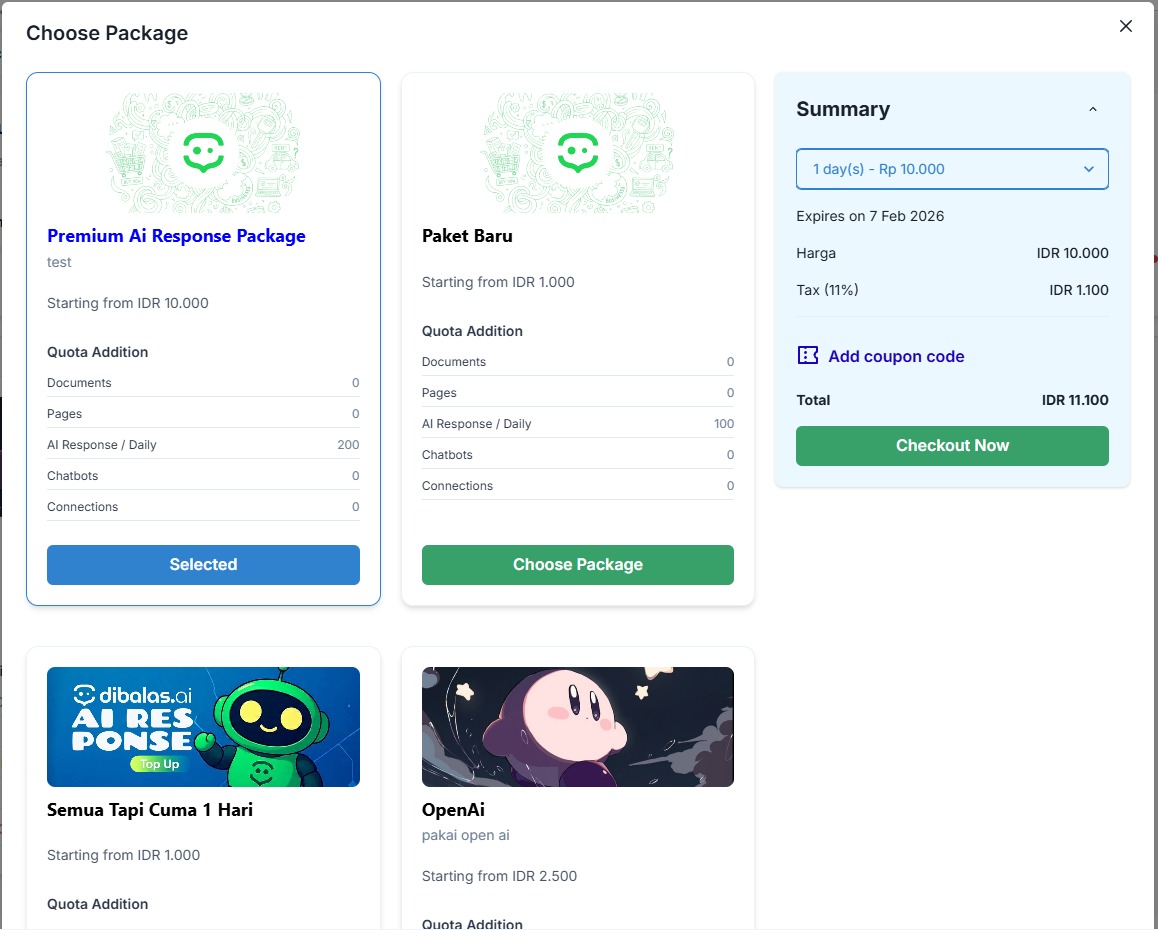 Note: Currently, our payment method is only available for users in Indonesia. If you are located in Indonesia and see this alert, please add 'Indonesia' to your browser's language settings. After completing the payment, you can switch your language back to English.