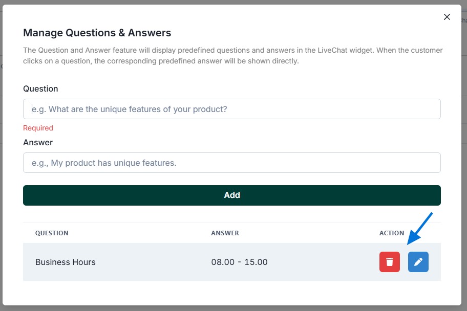 Click the “Manage Q&A” button to add or edit them.