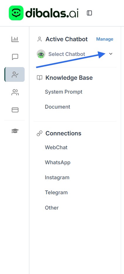 Click the dropdown. After that, choose the chatbot’s name from the dropdown menu to continue.