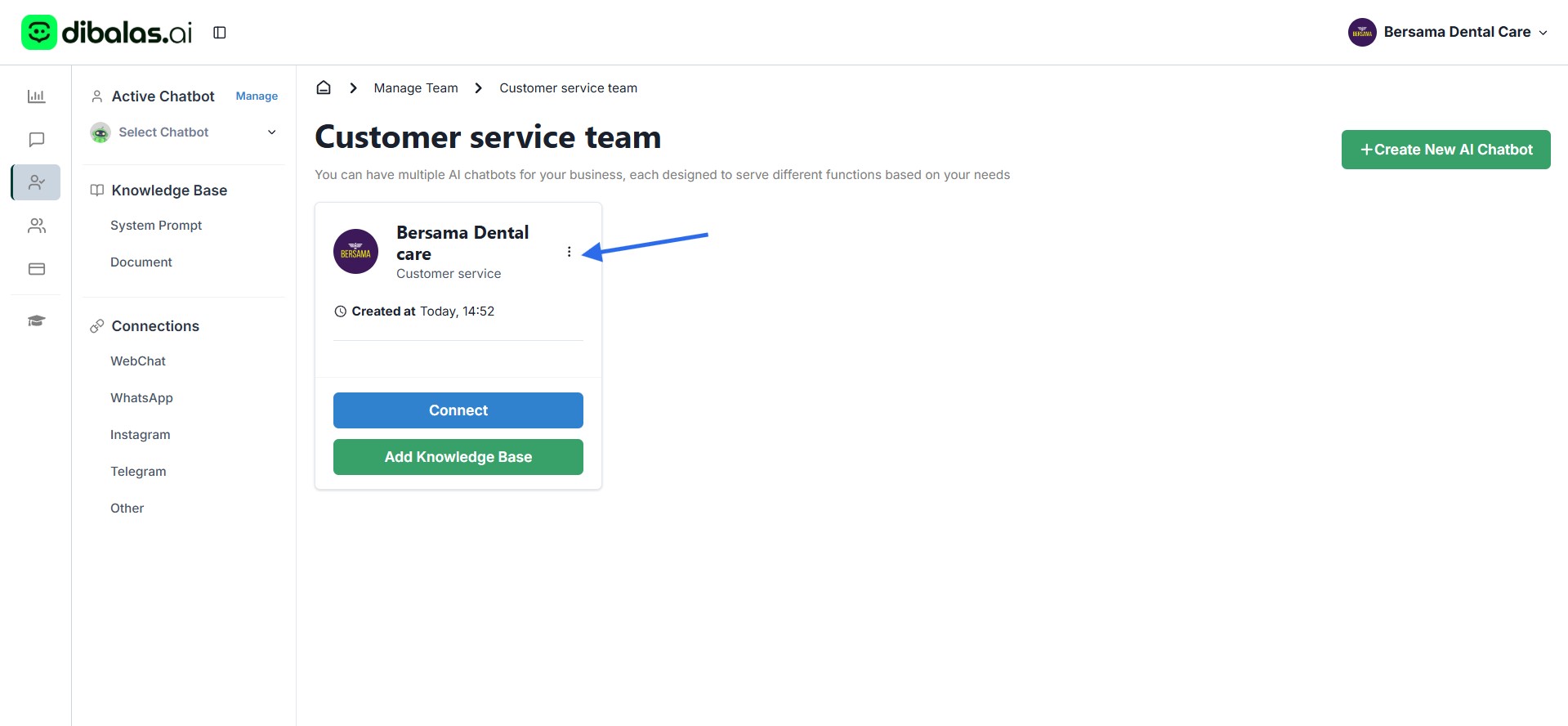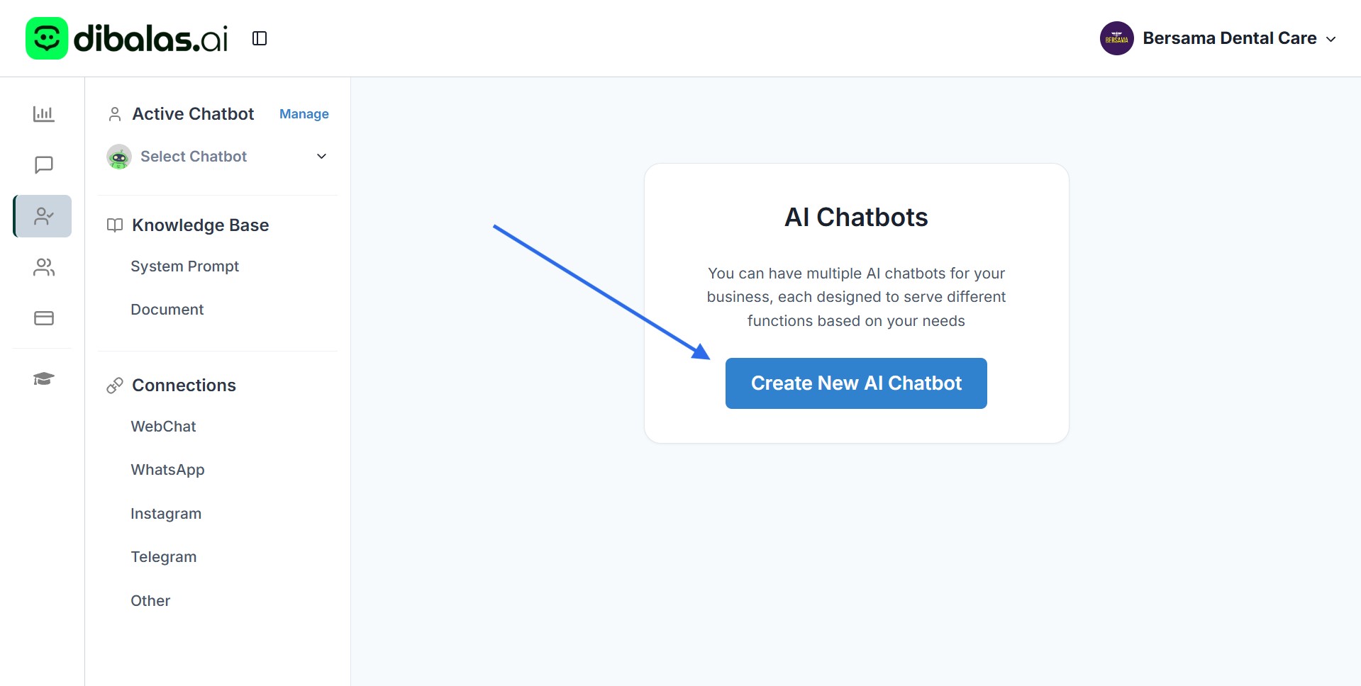- You will see a “Create New AI Chatbot” button.