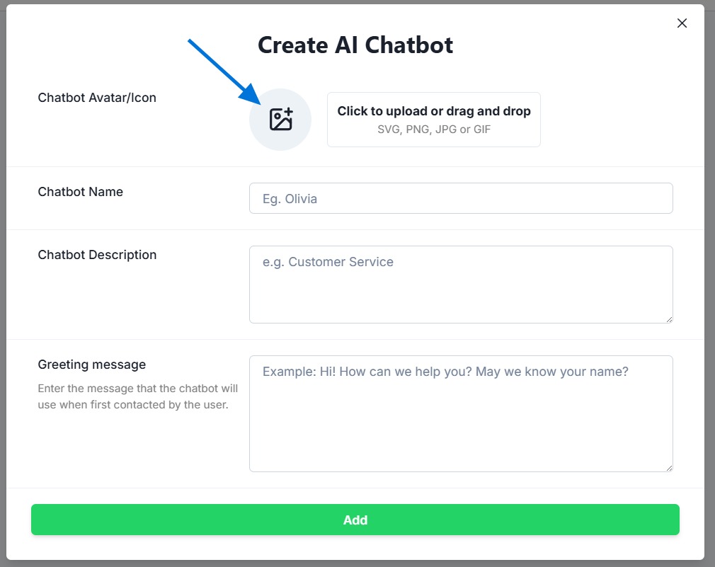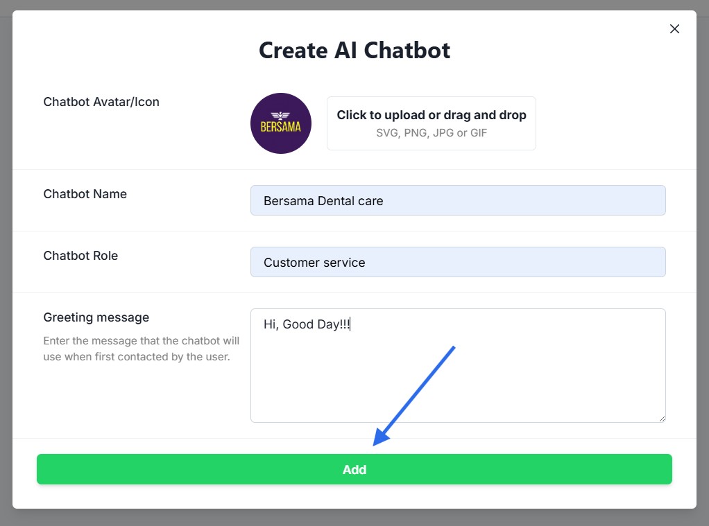 - Tap “Add” to add a chatbot.