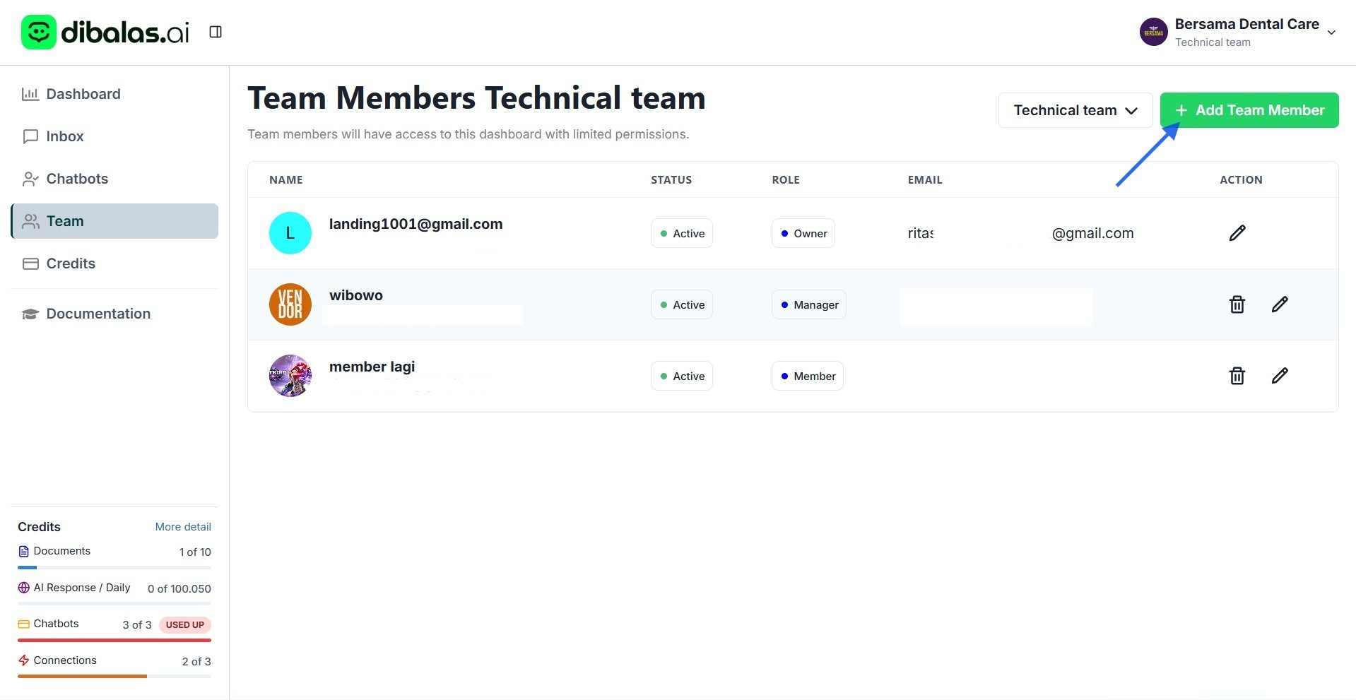 - Add, edit, or delete chatbots, connections, and the knowledge base.