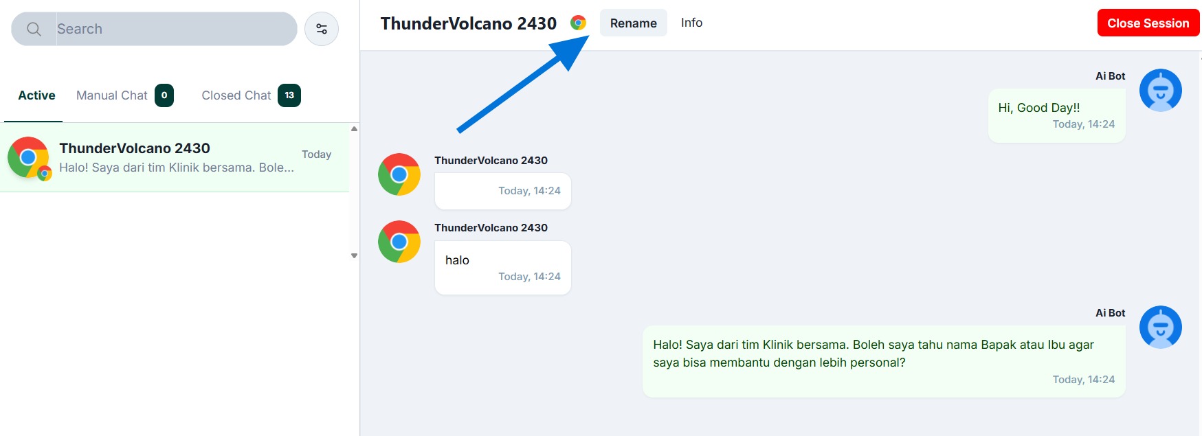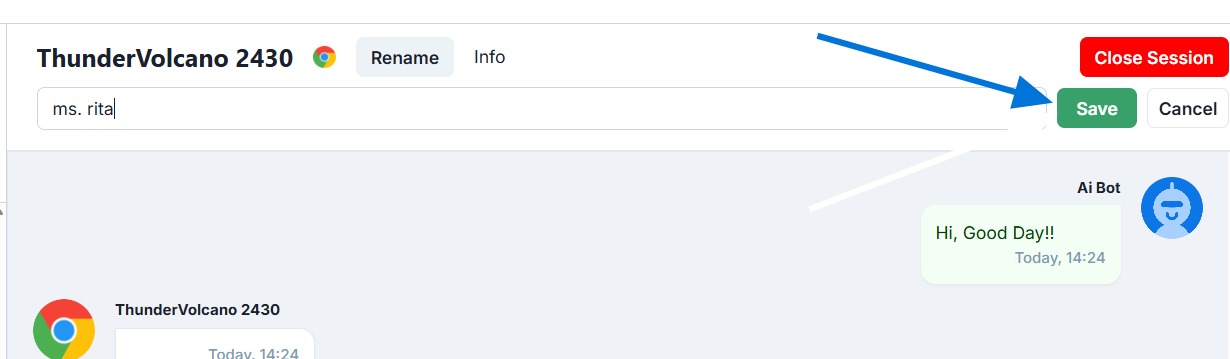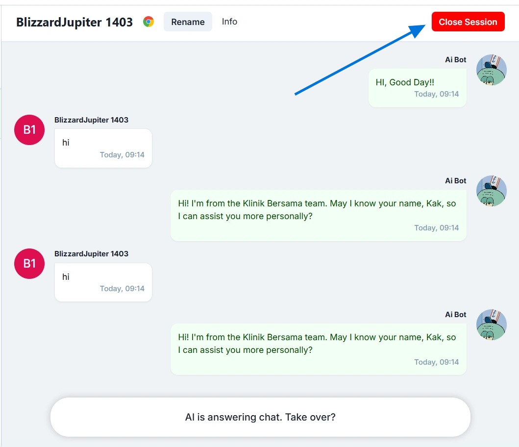 - If you click ‘Close Session’, this conversation will close and be moved to the Closed Chats section